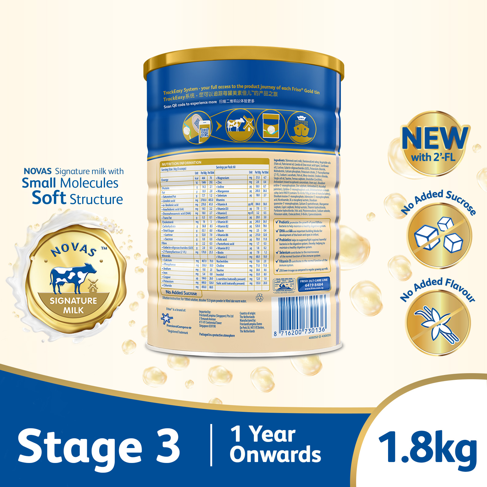 • Made from high-quality NOVAS Signature Milk that is sourced directly from our own farms in the Netherlands, crafted by our Holland Dairy Science Expertise.